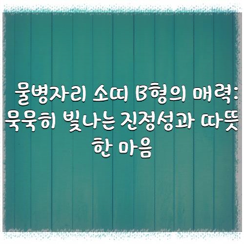 물병자리 소띠 B형의 매력: 묵묵히 빛나는 진정성과 따뜻한 마음 >> 확인하기