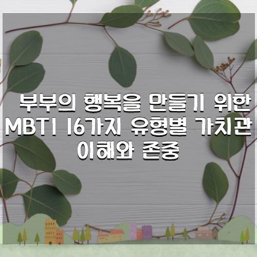 부부의 행복을 만들기 위한 MBTI 16가지 유형별 가치관 이해와 존중 아래 보시겠습니다.