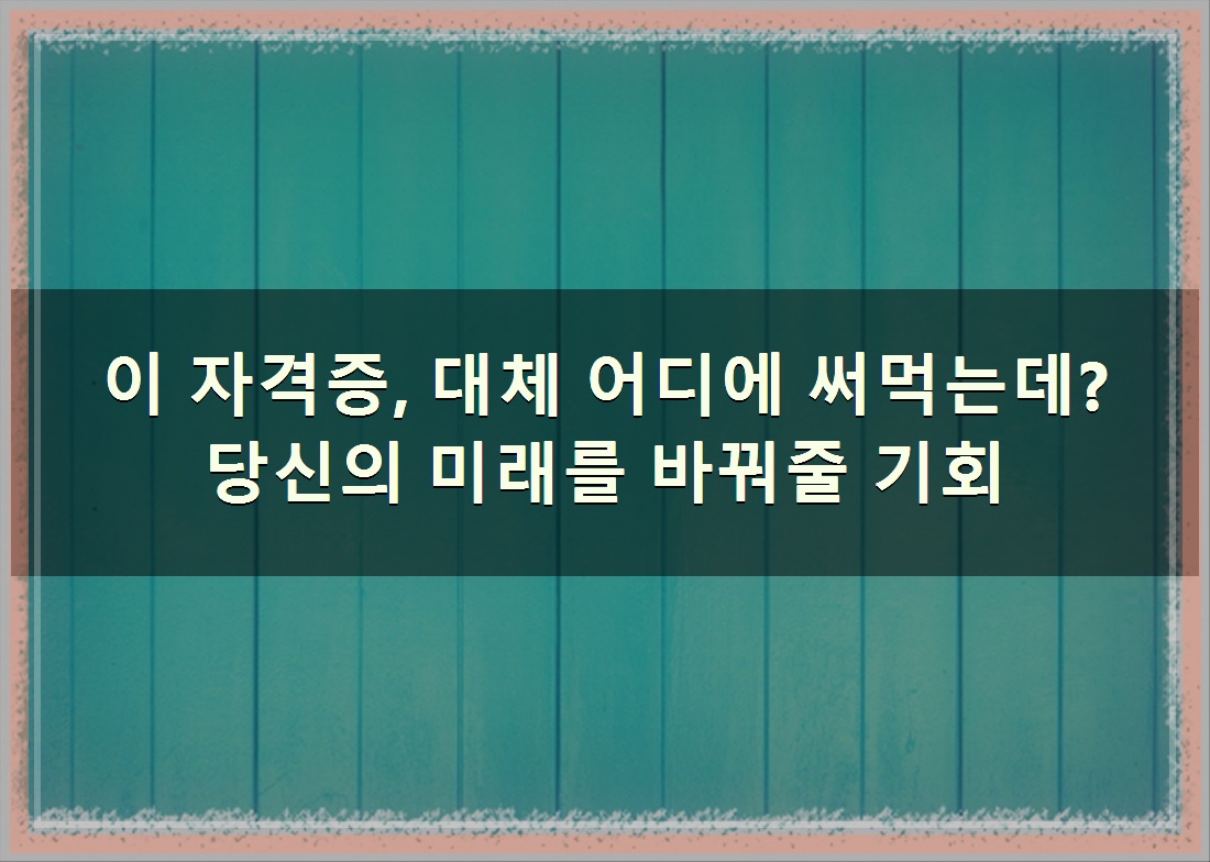 이 자격증, 대체 어디에 써먹는데? 당신의 미래를 바꿔줄 기회