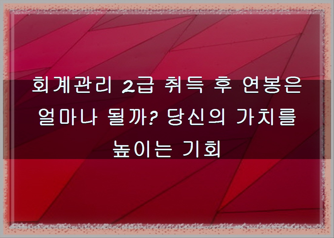 회계관리 2급 취득 후 연봉은 얼마나 될까? 당신의 가치를 높이는 기회