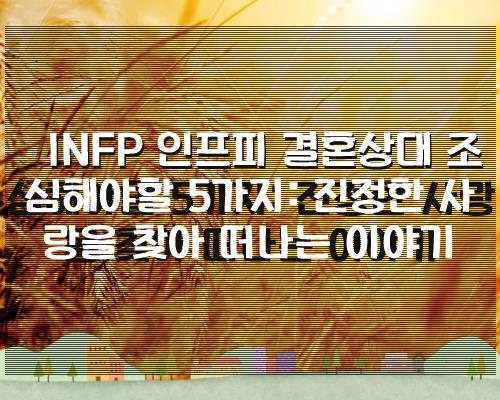 INFP 인프피 결혼상대 조심해야할 5가지: 진정한 사랑을 찾아 떠나는 이야기