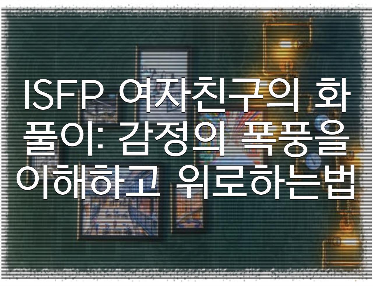 정리드린 글은 ISFP 여자친구의 화풀이: 감정의 폭풍을 이해하고 위로하는법 관련입니다. 모두에게 조금이라도 도움이 되셨으면 합니다.